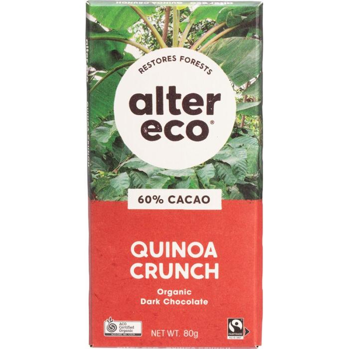 Snap and crackle get their pop with a hearty sprinkling of our royal pearl quinoa crisps. This ancient Bolivian grain lends its satisfying crunch and gentle nutty flavor to our deep, malty Ecuadorian dark chocolate. Raw cane sugar and Madagascar bourbon vanilla bean finish a classic recipe with pure flavor. Grab a bar when you need some good old-fashioned fun.