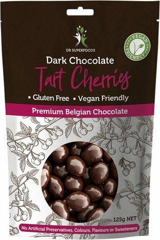 Our dark chocolate tart cherries are simply a taste sensation. We have lightly coated tart cherries in smooth vegan-friendly Belgian chocolate to create a unique product that is not only super delicious, it is vegan friendly and gluten-free!