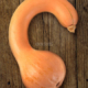 Large pumpkin, dark slate grey heavily ribbed skin. Sweet, deep orange flesh. Top keeping pumpkin. 100-140 days.