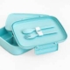 DESCRIPTION This is the lunch box you have been waiting for! With 5 deep compartments and child friendly cutlery attached to the inside of the main lid, your lunch making days will be easier than ever. This unique bento box is designed to be filled with delicious, healthy food that your kids love to eat. As well as promoting healthy lunches, the purpose of this bento style box is to also reduce the amount of litter consumption for our earth. We figure if you have all of the compartments you need with a leakproof lid, there is no need for plastic wrap to keep food fresh. It will even satisfy the fussiest of eaters who like to keep their food groups separate.