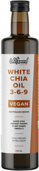 Untamed HealthAchieve a healthy and rich balance of Omega-3 to 6 EFAs in a small capsule White chia seeds possess a superior nutritional value (over black chia), with 40% higher Omega-3 as well as being smoother and virtually odourless. It’s also 30% higher than Flaxseed oil.